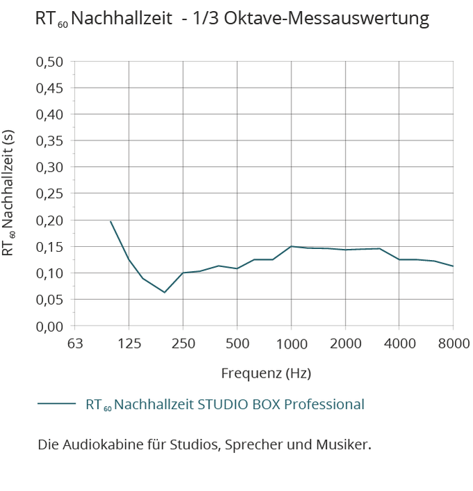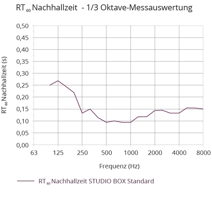 Hier findest du alle Messwerte der klassischen STUDIOBOXen. Die Nachhallzeit der biologischen Schallschutzkabine ROSI entspricht mit geringfügigen Abweichungen jener des Modells PREMIUM.