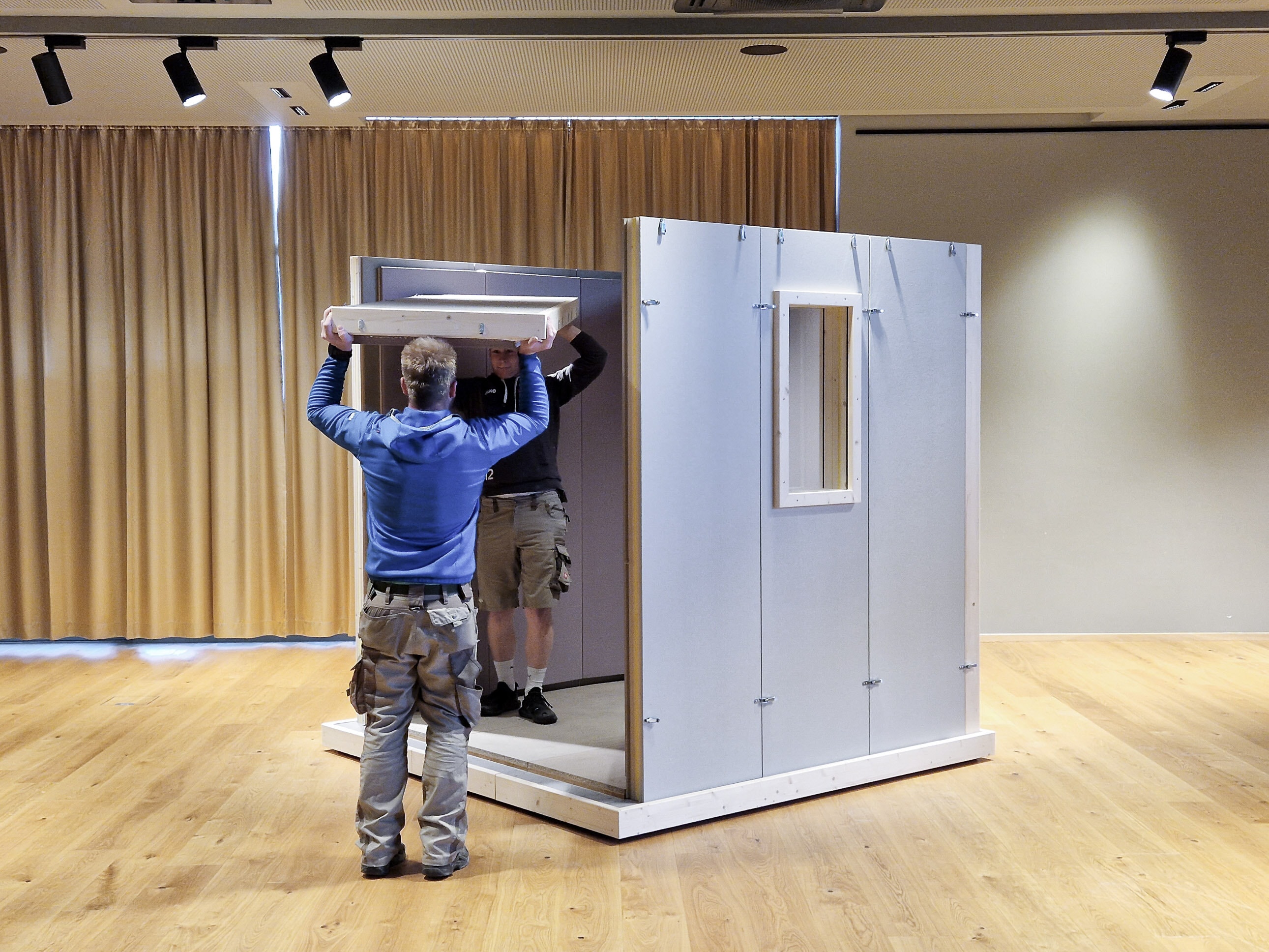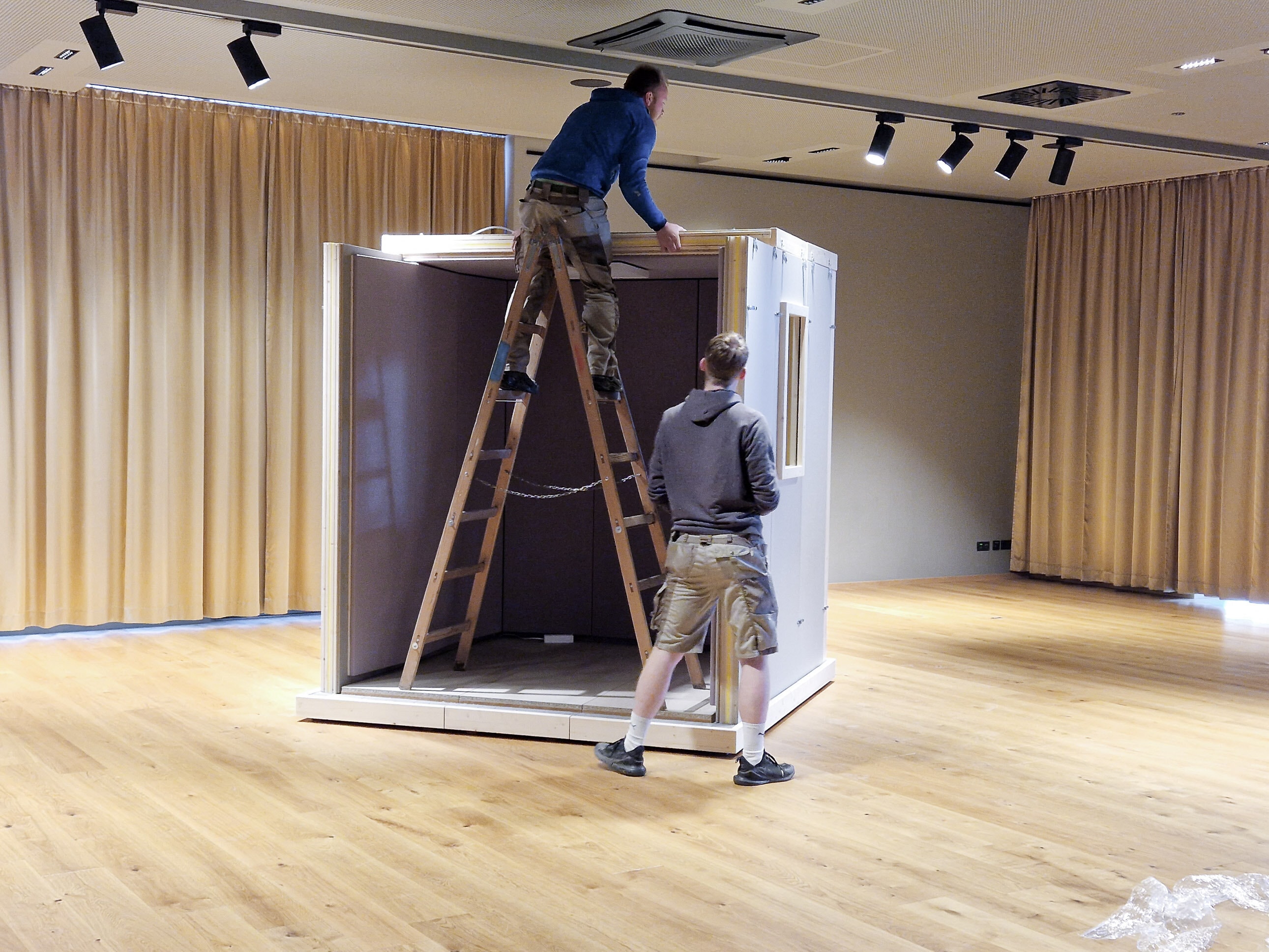 Seit Beginn der 1990er Jahre - solange gibt es STUDIOBOX schon - ist uns kein einziger Fall bekannt, dass eine Decke durch das Gewicht unserer Kabinen beschädigt oder gar eingestürzt wäre. Auch hat uns keine einzige Nachricht erreicht, dass die Tragfähigkeitsprüfung durch Experten nicht zu einem „OK“ geführt hätte.