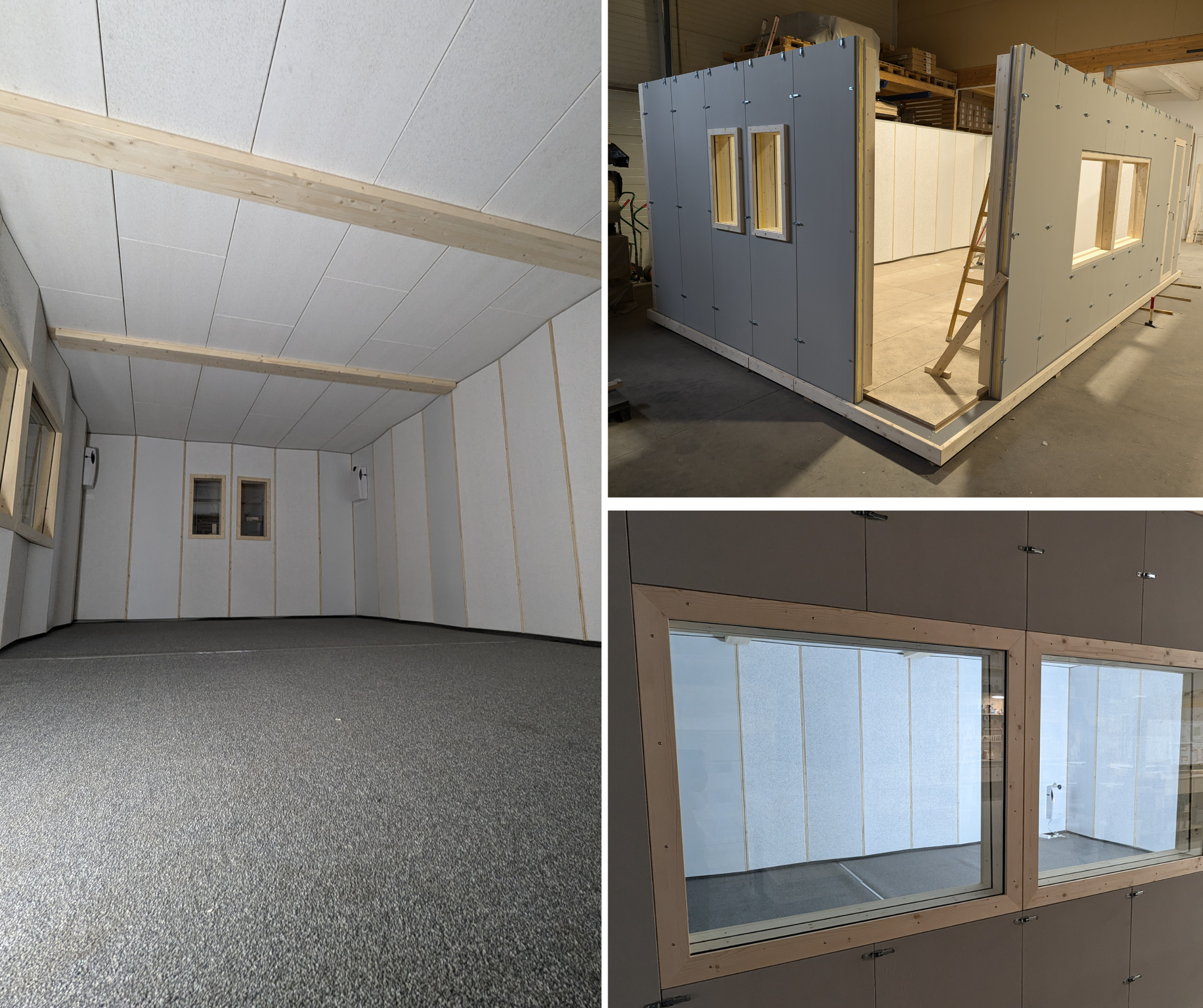 - Schalldämmende Wand-, Boden- und Deckenelemente zu 100 Prozent aus Holz